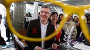 Una vez en estado líquido, el policarbonato se inyecta en los moldes de las lentes. En esa etapa del proceso, los moldes de las lentes se comprimen bajo presión y son enfriados para formar las lentes terminadas en cuestión de minutos.